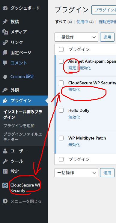 - CloudSecure WP Securityはそのままで使う